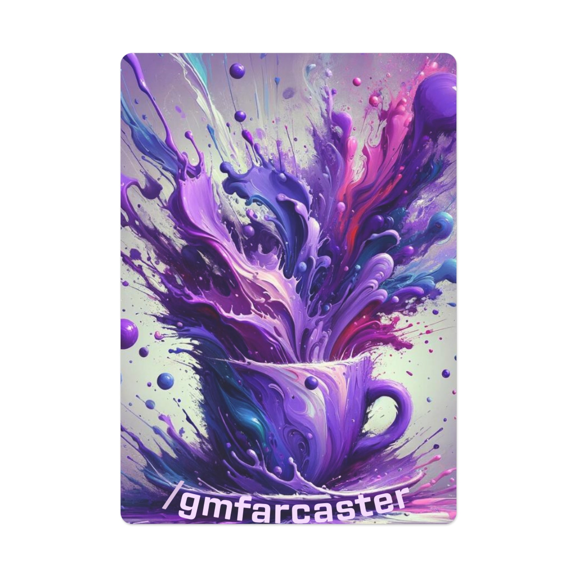 GM Farcaster purple cup logo Poker Cards made with high-grade 300gsm paper that features a glossy UV-resistant coating, this deck resists cracking and folding when the stakes are high. Each set features 52 cards, 2 jokers, and comes in a white box.